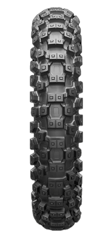 The Battlecross X30 and X40 front treads feature blocks molded left to right asymmetrically, providing high stability during braking and acceleration, with confident cornering grip at all camber angles. Tests have shown that all Battlecross front tyres provide significant higher grip level than the current Bridgestone M203, M403 and M603 products they replace.