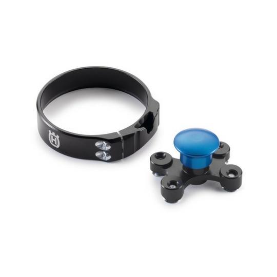 The factory start is mounted directly on the fork. Before the start, the fork is dipped and fixed in the desired position to shift the centre of gravity forwards. This to a large extent prevents the front wheel from lifting at the start, thus providing greater traction and perhaps securing you the odd holeshot or two. The first time the fork dips, the fixing is slackened and the fork released automatically